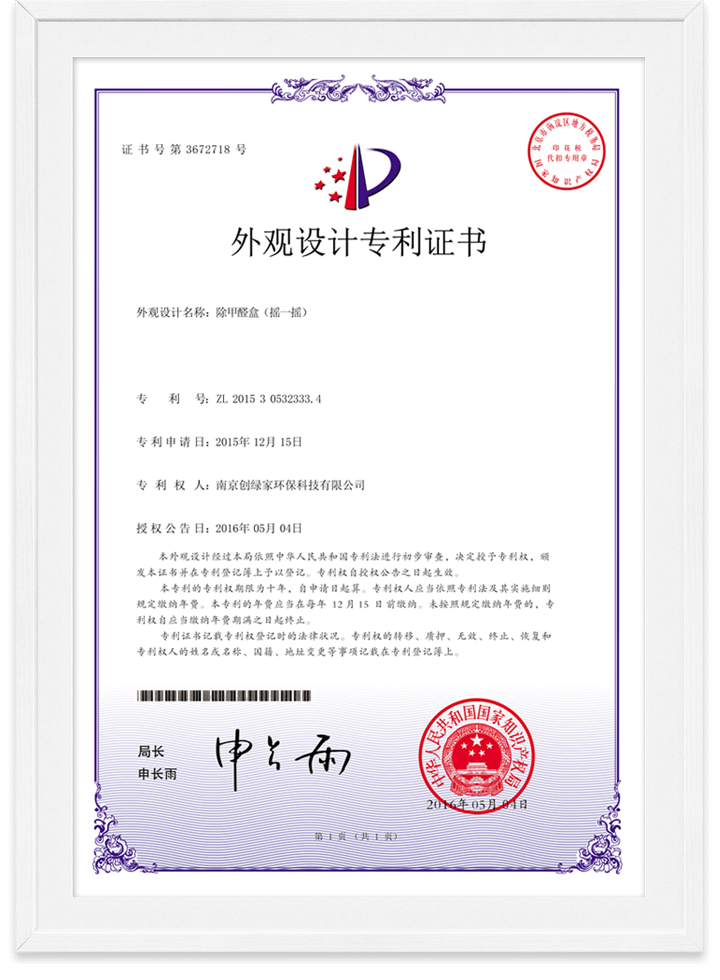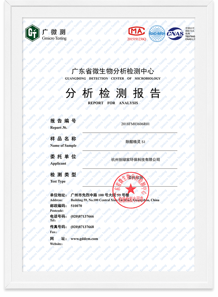 除醛精靈甲醛去除率檢測報告