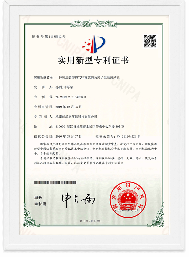 國家發(fā)明專利、實用新型專利證書