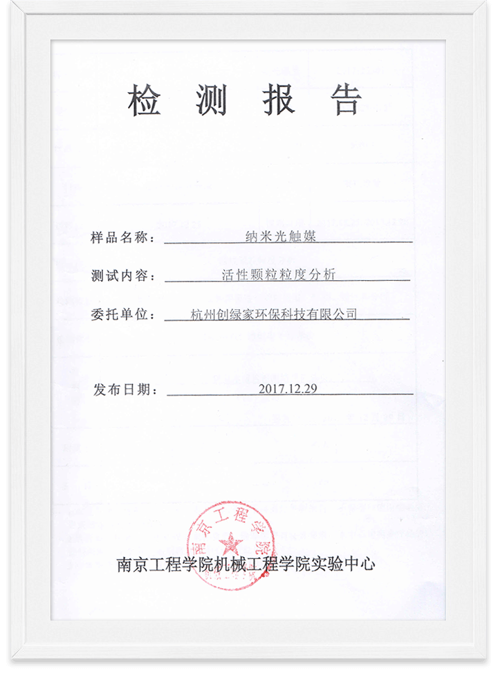 光觸媒納米粒徑檢測報告