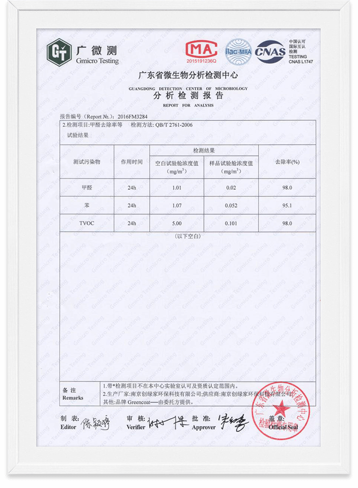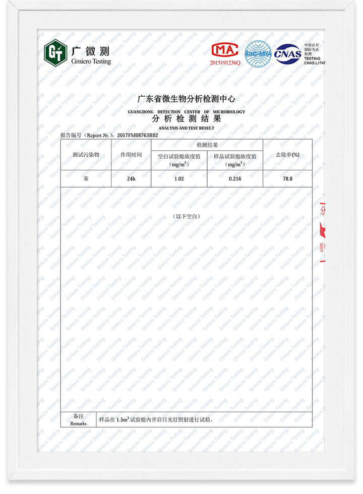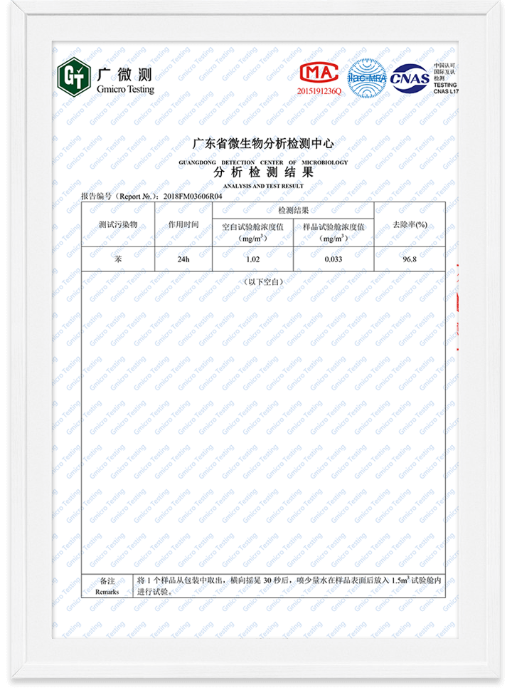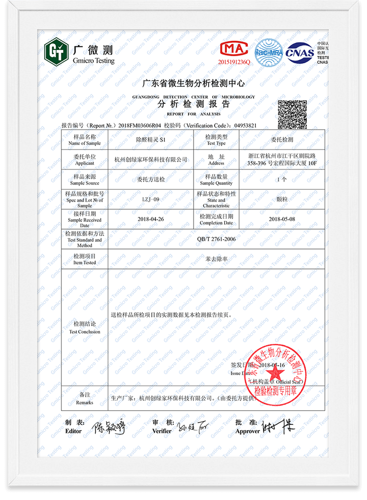 除醛精靈苯去除率檢測報告