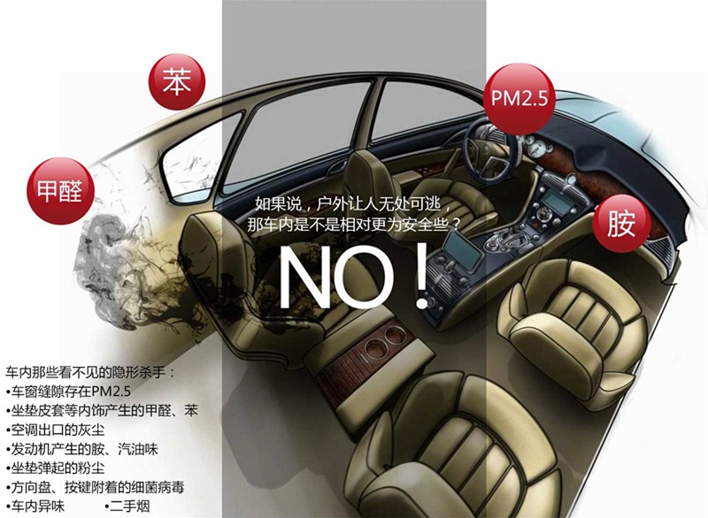 3、來自于汽車空調(diào)。由于新車空調(diào)各零部件正在磨合,而且空調(diào)通風(fēng)管道也是塑料的。在使用空調(diào)或車艙密封不好時,污染物就會進入車內(nèi)造成污染,這些污染物通常為二氧化硫 、二氧化碳等和揮發(fā)出的汽油。