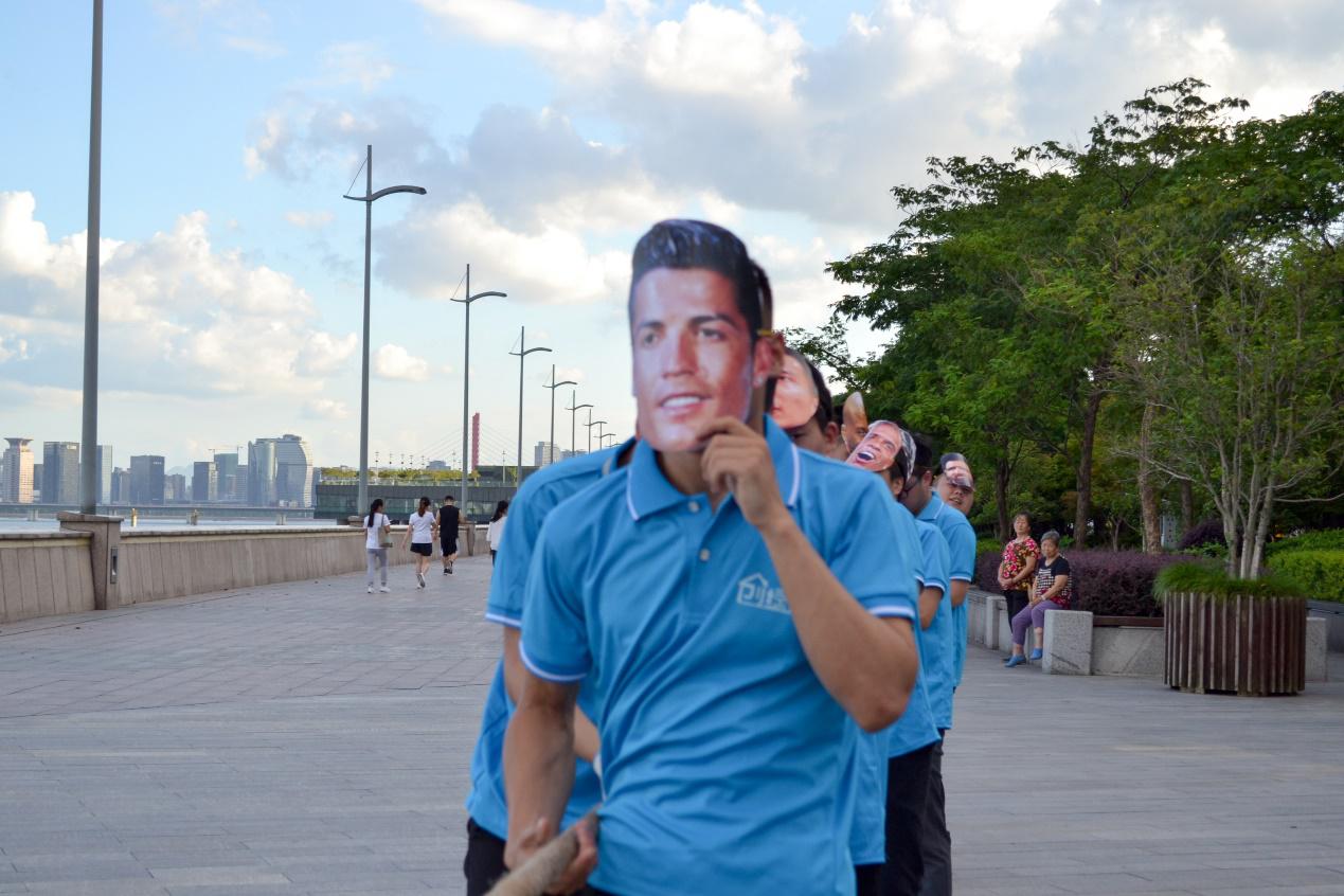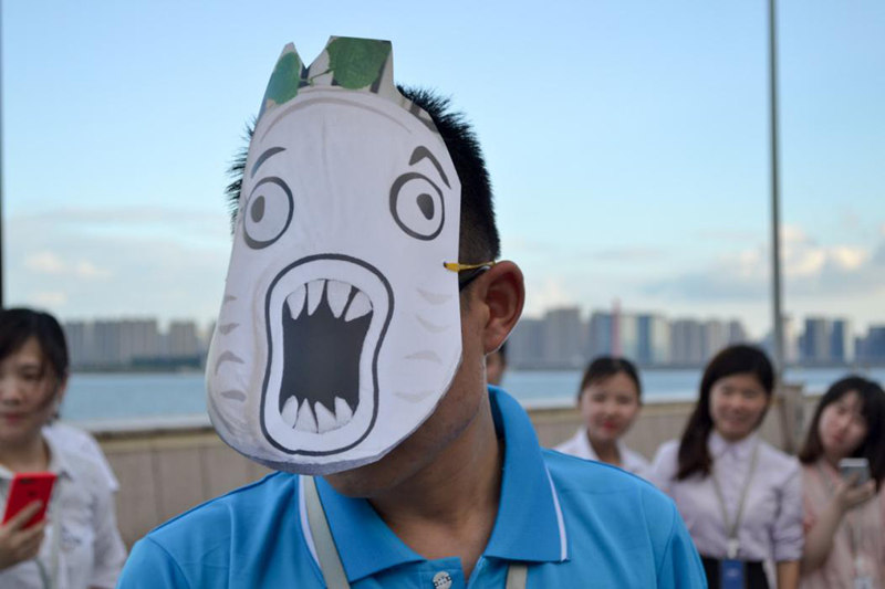此處省略很多小某,戴了面具進(jìn)行了惡搞版拔河比賽,引得大家哄堂大笑。