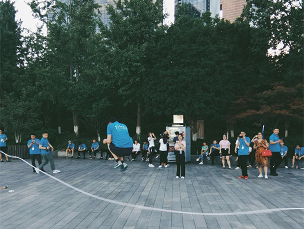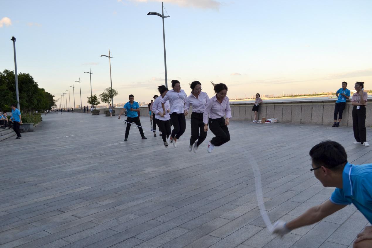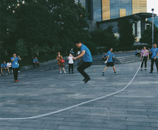五人一組比賽制,共分成三組,跳大繩不僅是甩繩大漢與小姑娘們的配合,也是五人之間的考核。本來蹦不高的女孩子,也一個(gè)勁兒地提臀抬腳,怕拌了繩,影響團(tuán)隊(duì)成績(jī),體力不支的情況下也咬牙堅(jiān)持到了最后,這就是團(tuán)隊(duì)的力量!創(chuàng)綠家的姑娘,不論在工作上還是精力上,各個(gè)巾幗不讓須眉。最終第二組姑娘以四十幾不間斷數(shù)量取得了本次跳繩比賽的***組。