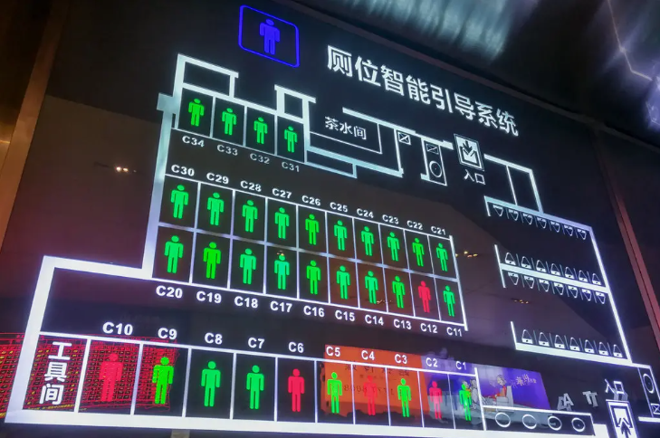 智能廁所配備紅色綠色有人無人燈,通過傳感器監(jiān)測實時人流信息,能夠自動控制廁所內(nèi)的清潔供應。例如:廁所內(nèi)有人時供應電、紙巾、水等資源,節(jié)約資源的同時也保證了衛(wèi)生。