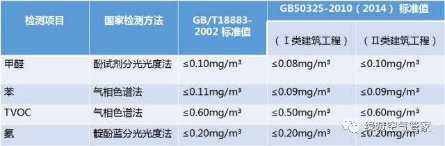 注2:相比于GB50325-2010(2014)標(biāo)準(zhǔn),GB/T18883-2002標(biāo)準(zhǔn)對甲苯和二甲苯兩個(gè)項(xiàng)目也有具體要求,數(shù)據(jù)都是≤0.20mg/m3;