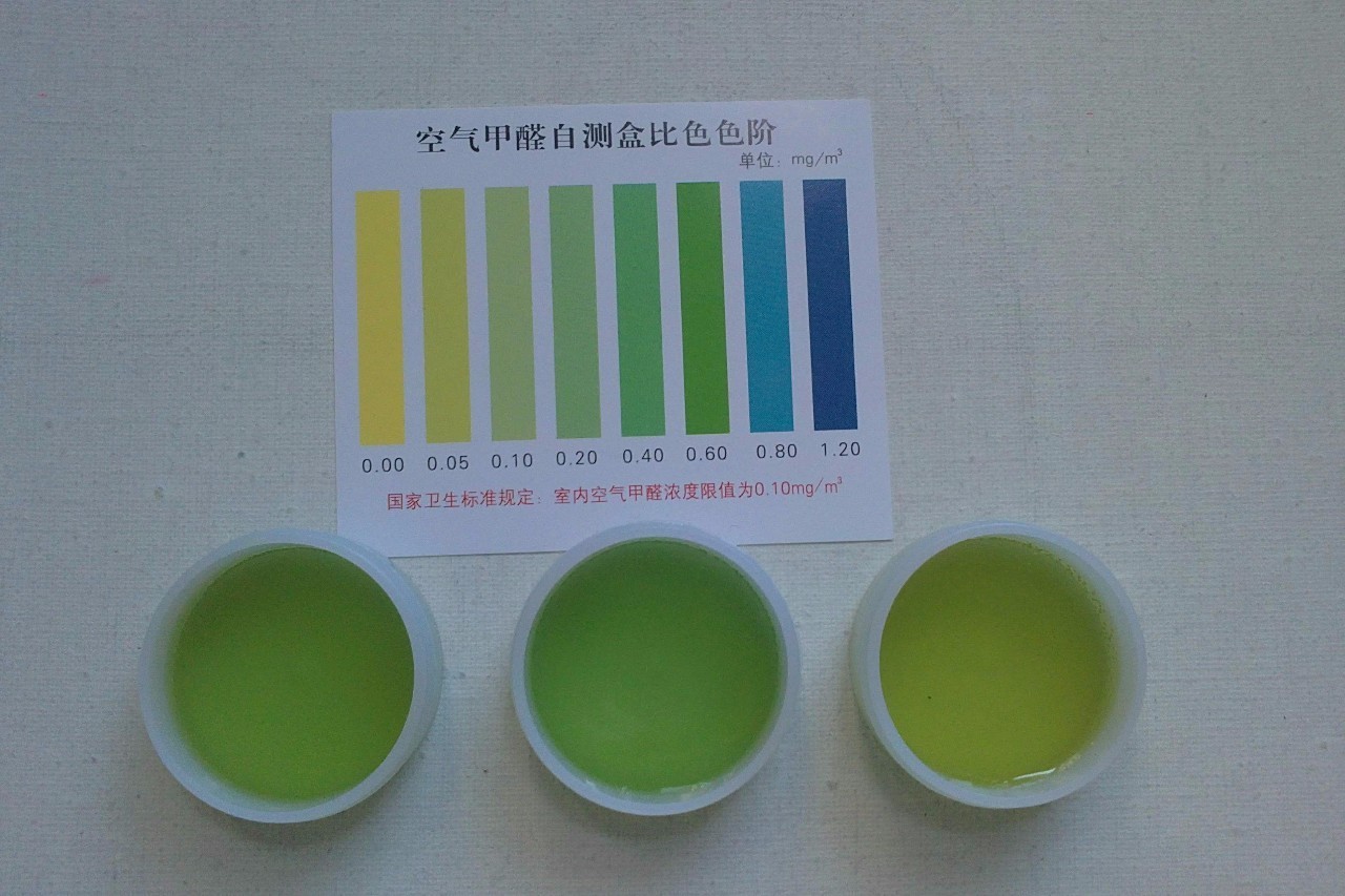 我們可以,同時檢測2個或3個房間,如客廳、臥室、書房;或同一房間室內(nèi)、家具內(nèi)、抽屜內(nèi)各放置一個。結(jié)果出來后,三個吸收盒放在一起,顏色各異,一目了然。