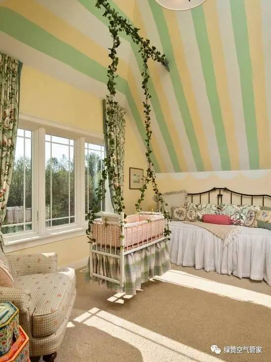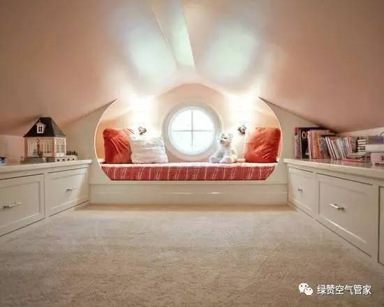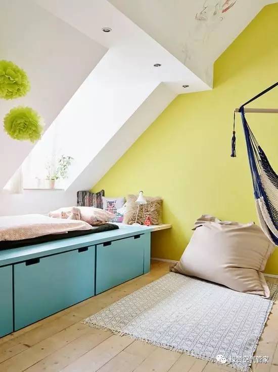 小編的話:薄荷綠的漆面粉刷閣樓墻壁,為低矮的空間增添明亮的清新,盡可能的加大采光空間,引入陽光,多彩絢麗的軟裝搭配出一個(gè)歡樂的空間氛圍。