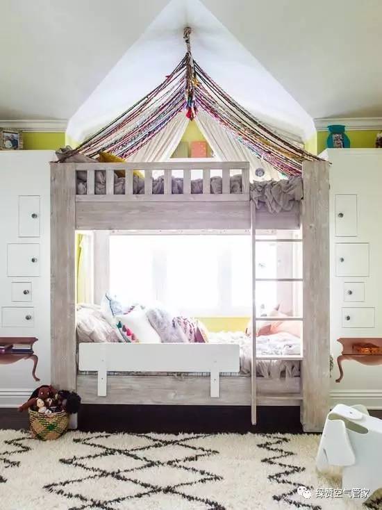 小編的話:雖然低矮,但完全對稱的設(shè)計(jì)為其增添了一絲規(guī)整與大氣,鋪滿地毯給寶貝一個(gè)安全舒適的柔軟空間,圓弧形的床設(shè)計(jì),增加了兒童房的奇趣設(shè)計(jì),添置一款窗簾,似乎可以將睡眠空間隱藏起來。